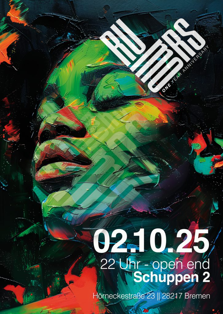 Am 02.10. ab 22 Uhr geht die Party im Schuppen 2 in der Überseestadt Bremen so richtig ab! – Next Level Rumors Flair, feinster Afro-House-Sound und richtig gute Vibes.